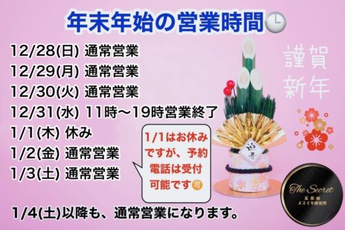 THE SECRET-五反田メスイキ研究所-の年末年始の営業時間が発表されました🙌